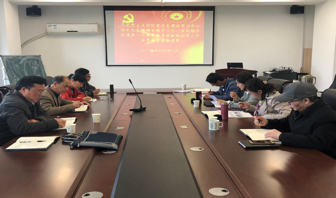 根据我院党总支理论学习中心组党的十九大精神专题学习计划安排,4月16日,马克思主义学院党总支理论学习中心组召开专题学习会——深刻领会实现第一个百年奋斗目标和向第二个百年奋斗目标进军,概论教研室支部书记郑千千领学,理论学习中心组全体成员作交流研讨。
