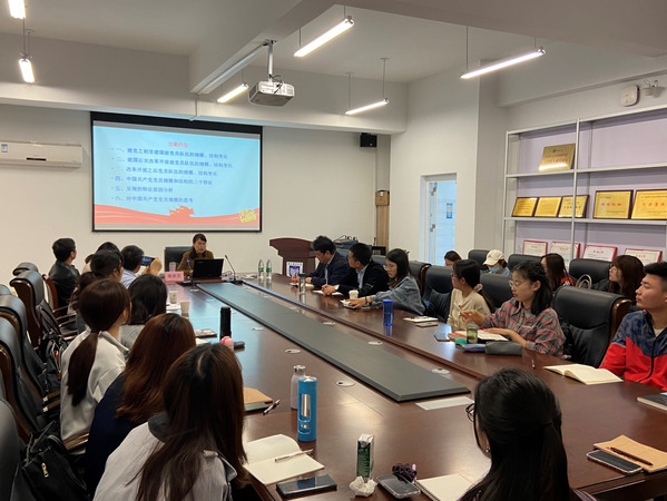 2021年4月21日上午,马克思主义学院在仙林校区文科楼330会议室举办题为“百年来中国共产党党员队伍建设的思考”学术讲座,南京大学马克思主义学院熊秋良教授受邀主讲。我院师生齐聚于此,认真聆听了熊教授的精彩报告。出席会议的有学院党总支书记沈召前,学院副院长(主持)朱奎泽,学院部分教师及全体研究生同学参加了此次报告会。