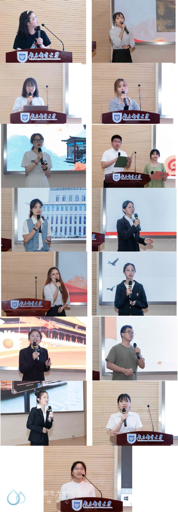 活动中,15个团队就“缅怀历史,不忘初心——走进侵华日军南京大屠杀遇难同胞纪念馆”、“不忘百年征程梦,昂首奋进向未来”、“大国外交”、“进步人士群像展”、“你的信仰我的荣耀”、“南邮红色校史”“为实现中国梦注入青春能量”、“引经据典,看中华传统美德的基本精神”、“百年风华初心不改,千帆竞发后浪激荡”、“认识世界和改造世界相结合”、“学‘马’用‘马’,融‘马’一生”、“百年征程,薪火相传——人民群众对历史的作用”、“寻往昔红色足迹,铸信息报国之志”、“红船精神:红船劈波行,精神聚人心”、“不负韶华青春志 同心共筑中国梦”等主题,开展了形式多样的现场展示,阐述他们对思政课的理解。
