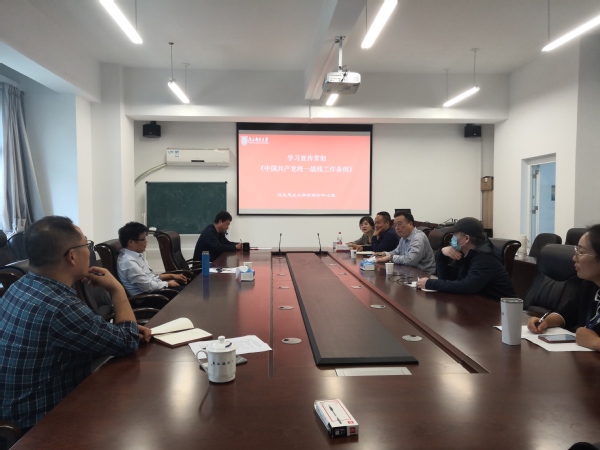 10月11日,马克思主义学院党总支理论学习中心组在学院330会议室召开专题学习会,学习宣传贯彻《中国共产党统一战线工作条例》。会议由党总支书记沈召前主持。