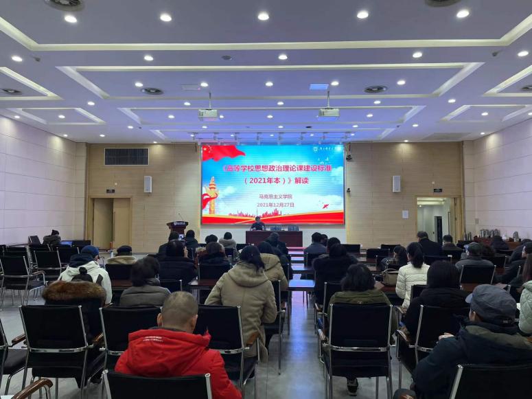 随后,汪院长根据《高等学校思想政治理论课建设标准(2021年本)》,从修订背景和主要考虑、文本架构与主要内容、主要特点和贯彻落实三个方面对《标准》展开细致解读。他强调,学院上下要认真贯彻落实中央和教育部系列文件精神,进一步提高政治站位,进一步加强班子和管理骨干队伍建设,进一步加强师资队伍建设,进一步加强学科建设,以新《标准》为指导,按照学校要求,从组织管理、教学管理、队伍管理、学科建设等方面切实推动思政课建设内涵式发展,认真开展自查自评,找差距、补短板,进一步推进研究制定学校贯彻落实《思想政治理论课建设标准的实施方案》,全面推进和提升思政课建设质量。