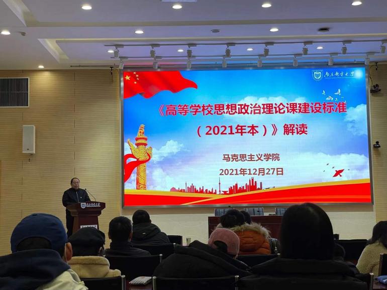 2021年12月27日上午,我院在仙林校区计算机学科楼一楼报告厅召开期末工作部署会暨《高等学校思想政治理论课建设标准(2021年本)》解读专题会。院党总支书记沈召前主持会议。