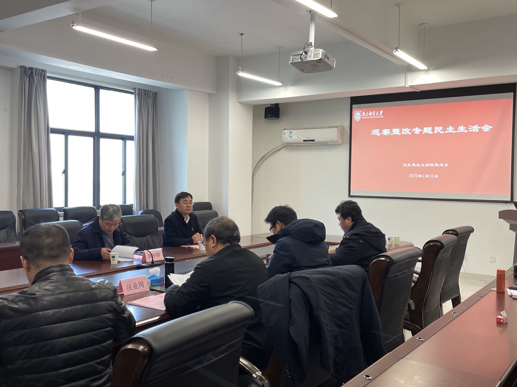 为认真落实校党委巡察整改工作要求,1月15日上午,马克思主义学院党总支在文科楼330会议室召开巡察整改工作专题民主生活会。校党委常委、副校长郭宇锋和校纪委有关同志到会全程督导。院党总支书记沈召前主持会议并作表态发言,学院全体领导班子成员参加会议。