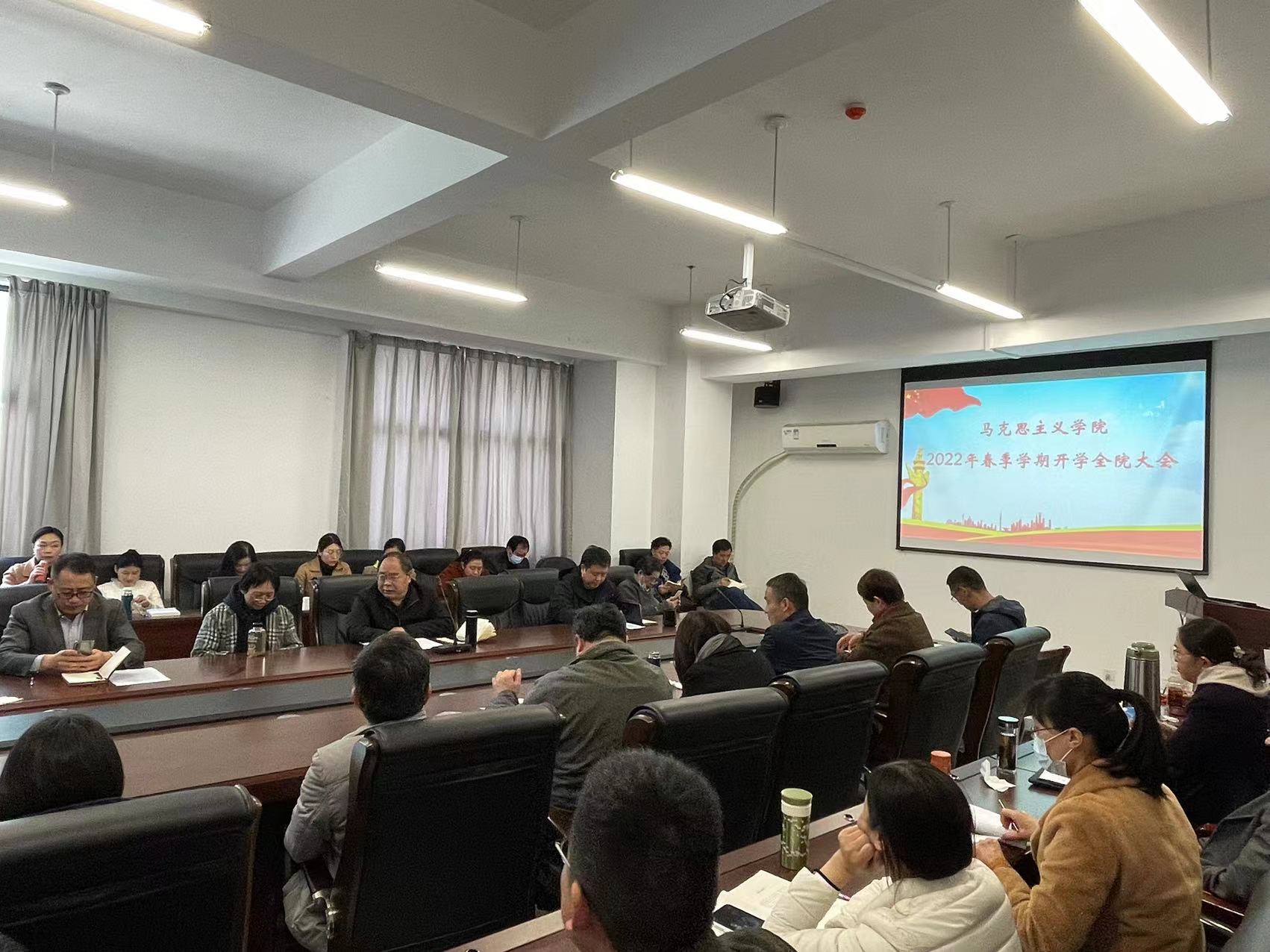 副院长史献芝部署思政课全年教学工作。史院长从遵守师德师风、规范教学材料、做好思政课教学成果奖申报、常态化开展教研活动等四个方面明确思政课全年教学工作目标,指出全院教职工要坚持“马院姓马、在马言马”,不断提高教学质量。