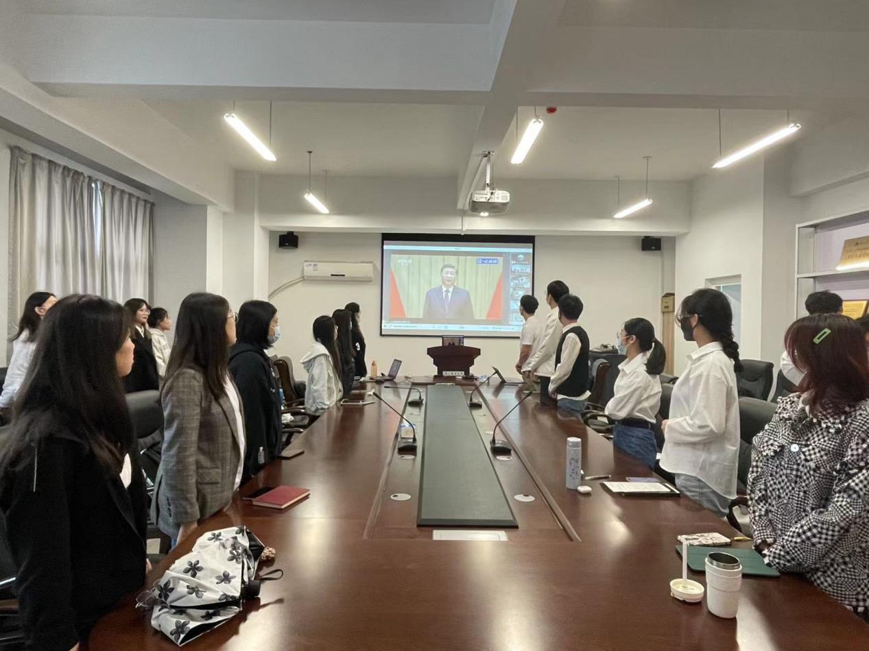 5月10日上午,庆祝中国共产主义青年团成立100周年大会在人民大会堂隆重举行,习近平总书记发表重要讲话。马克思主义学院组织理论学习中心组全体成员、部分师生共七十余人观看庆祝大会视频直播。理论学习中心组成员、思政课教师及学院管理人员通过腾讯会议形式进行收看,学院研究生在文科楼330会议室线下收看大会直播盛况。