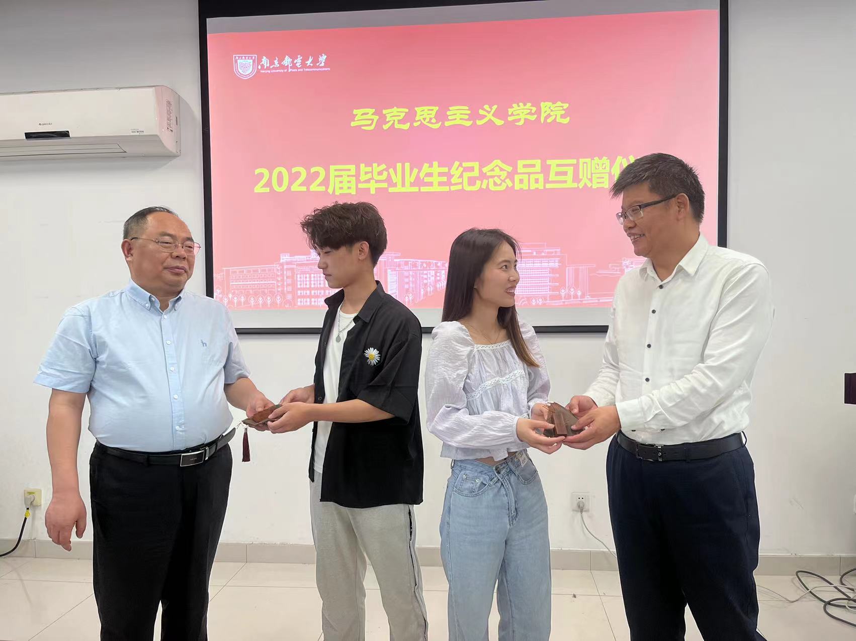 2022年5月20日,马克思主义学院在文科楼330会议室举行了2022届毕业生纪念品互赠仪式。学院党委书记沈召前、院长汪业周、辅导员黄洁及2022届毕业生代表参加了此次互赠仪式。