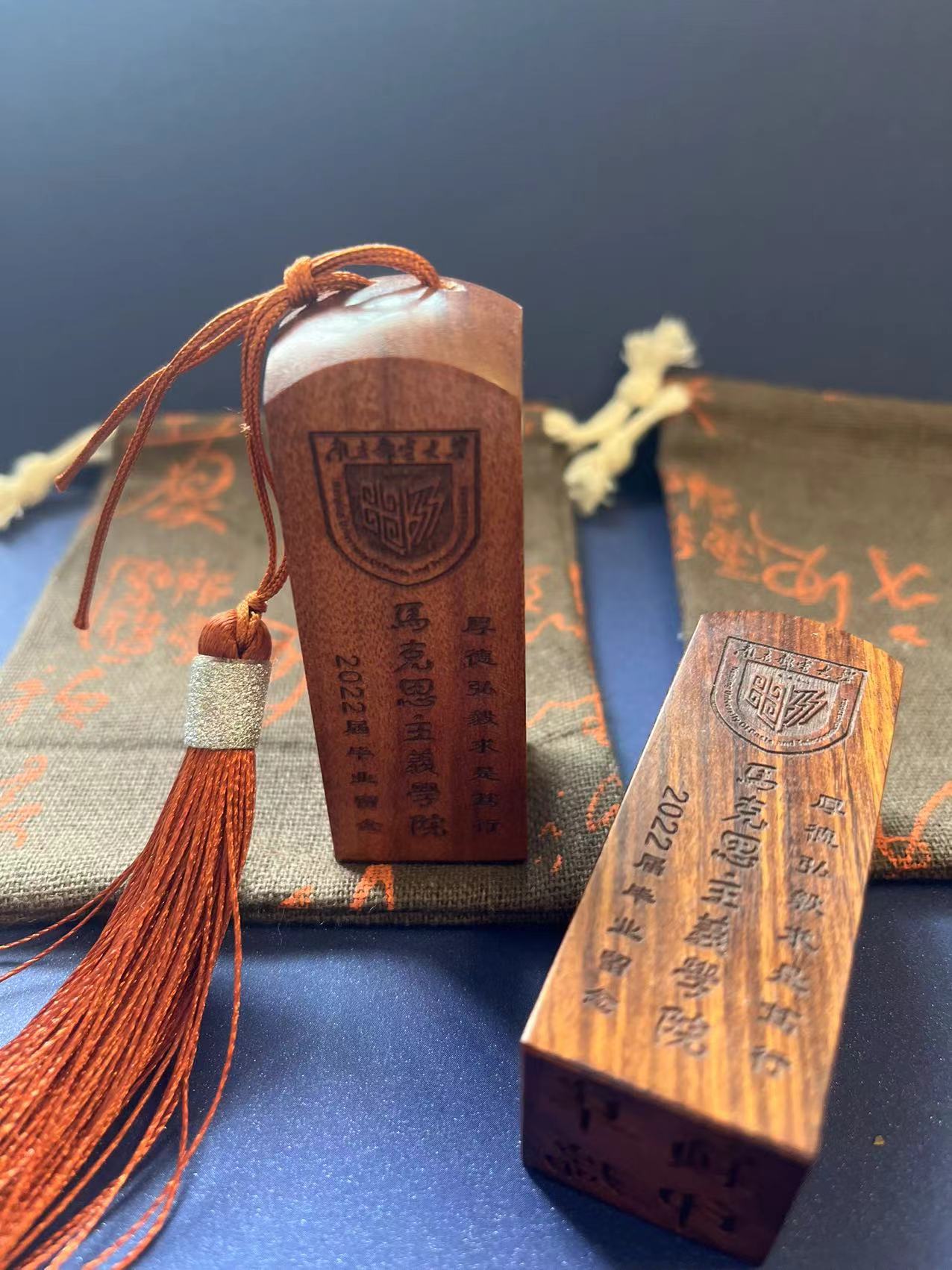 学院向毕业生赠送了一份专属“毕业礼”——一枚刻有每个人姓名的专属印章。印章头顶校徽,内镶的校训以及“马克思主义学院2022届毕业留念”的字样。希望毕业生们能够牢记“厚德、弘毅、求是、笃行”的校训,在新的人生征程中坚定理想信念,践行初心使命,带着属于这枚专属“印章”,去盖好人生道路的每一个独特印记。