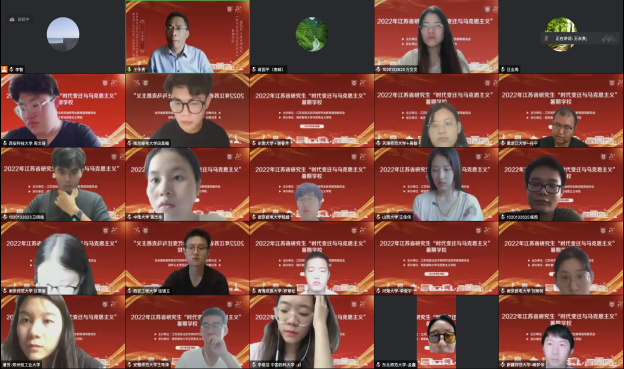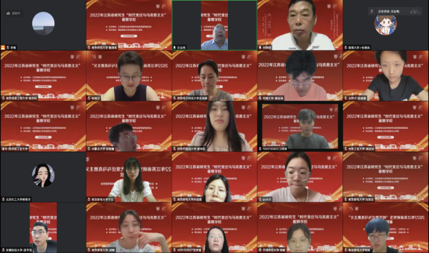 8月12日,由江苏省哲法史学类研究生教育指导委员会主办,南京邮电大学马克思主义学院承办的2022年江苏省研究生“时代变迁与马克思主义”暑期学校线上召开,近500人通过腾讯会议平台观看了此次直播。本次暑期学校为期8天,共安排13场专家讲座、1场学员分组交流讨论课和1场学员代表结业汇报。