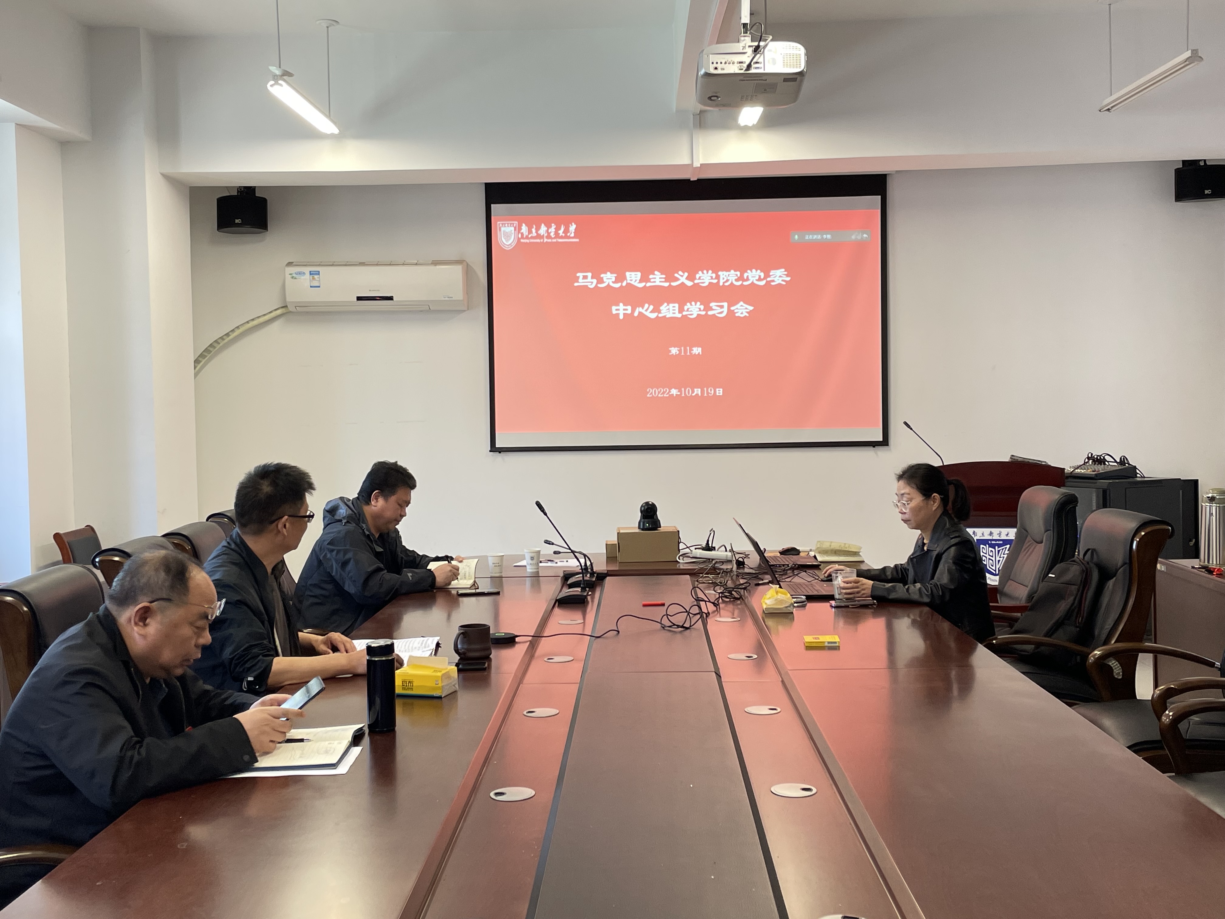 10月19日下午,马克思主义学院党委理论学习中心组在文科楼330会议室召开专题学习会,学习习近平同志在中国共产党第二十次全国代表大会上的报告。党委书记沈召前、院长汪业周、副院长史献芝作重点发言,理论学习中心组其他成员进行交流研讨。会议以线上线下相结合形式进行。