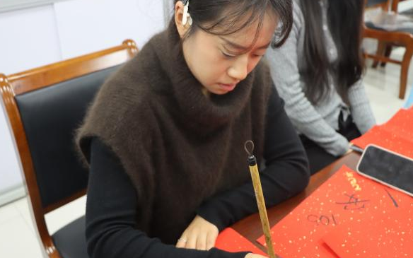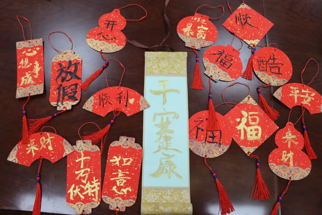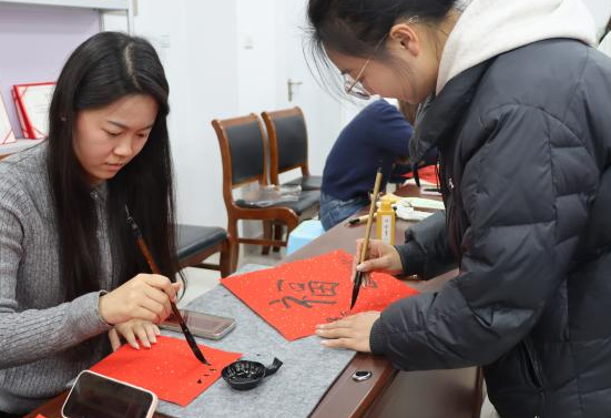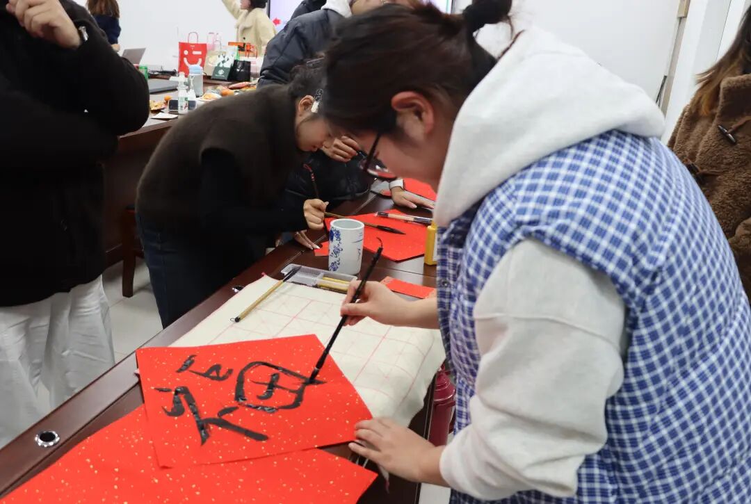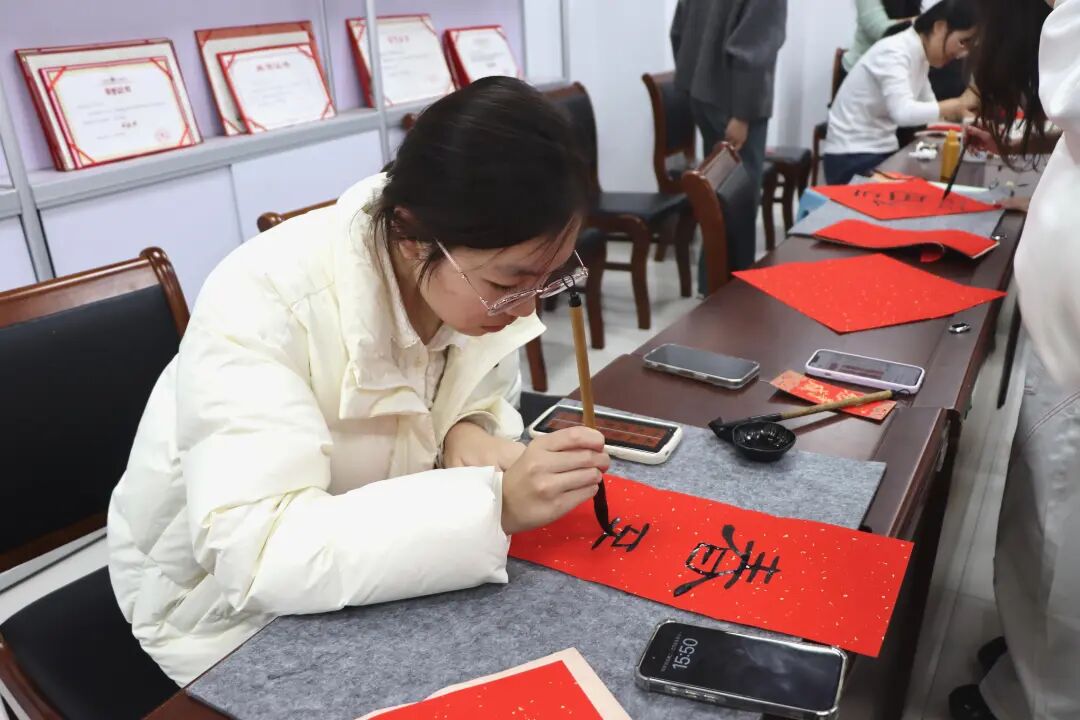 互动环节里,同学们踊跃参与,共享欢乐时光。素笺挥毫,赓续中华文脉;墨香流转,抒发新春雅韵。同学们以精湛的书法技艺,写下对新年的美好期许。此外,“你画我猜”“书写明信片”等趣味活动轮番上演,现场欢声笑语不断,同学们兴致盎然、意犹未尽。