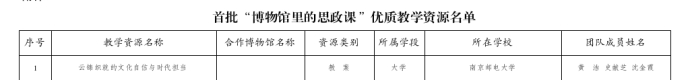 近年来,南邮马克思主义学院“大思政课”建设成效显著,已建成国家一流实践课程“红色校史专题课”、教育部国家“大思政课”实践教学基地、教育部红色文化弘扬传承基地、江苏省一流虚拟仿真课程“烽火邮情——千里走单骑”,项目入选全国大中小学“大思政课”优质资源建设推介精品项目。此次入选江苏省首批优质教学资源,既是对学院教学改革与实践育人成果的充分肯定,也为持续深化“博物馆里的思政课建设”、推动大中小学思想政治教育一体化建设、打造特色思政育人品牌注入强劲动力。未来,学院将持续深挖江苏地域文化资源与博物馆特色育人资源,推出更多思想性、理论性、亲和力、针对性强的思政“金课”,引导广大青年学生在社会大课堂中受教育、长才干、作贡献,为培养担当民族复兴大任的时代新人、构建新时代立德树人新格局贡献更大力量。