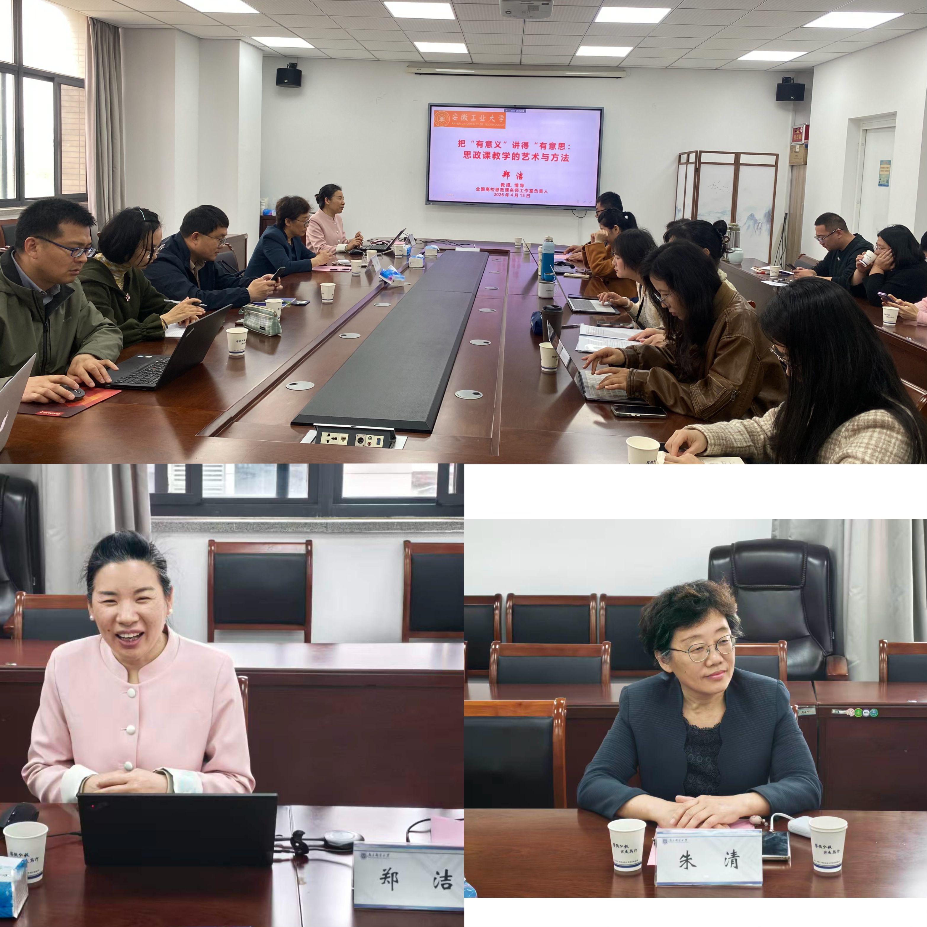 4月15日上午10点,南京邮电大学马克思主义学院在330会议室举办督导讲习营专题讲座,特邀安徽工业大学马克思主义学院院长、博导、全国高校思政课名师工作室负责人郑洁教授,作题为《把“有意义”讲得“有意思:思政课教学的艺术与方法》的专题分享。校督导朱清教授出席并总结,学院全体青年教师参加学习,讲座由陈宗章教授主持。
