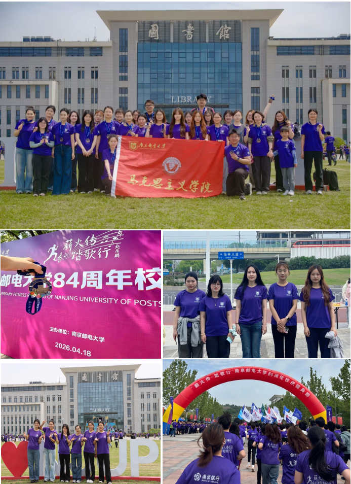 4月18日上午,南京邮电大学“薪火传•踏歌行”84周年校庆健身跑活动如期举行,学院师生满怀热忱参与其中,尽显昂扬奋进的精神风貌。马克思主义学院全体师生将传承薪火精神、永葆奋进姿态,与学校同心同行、砥砺共进。衷心祝愿南京邮电大学弦歌不辍、薪火绵长,在新征程上再创佳绩、再谱华章!