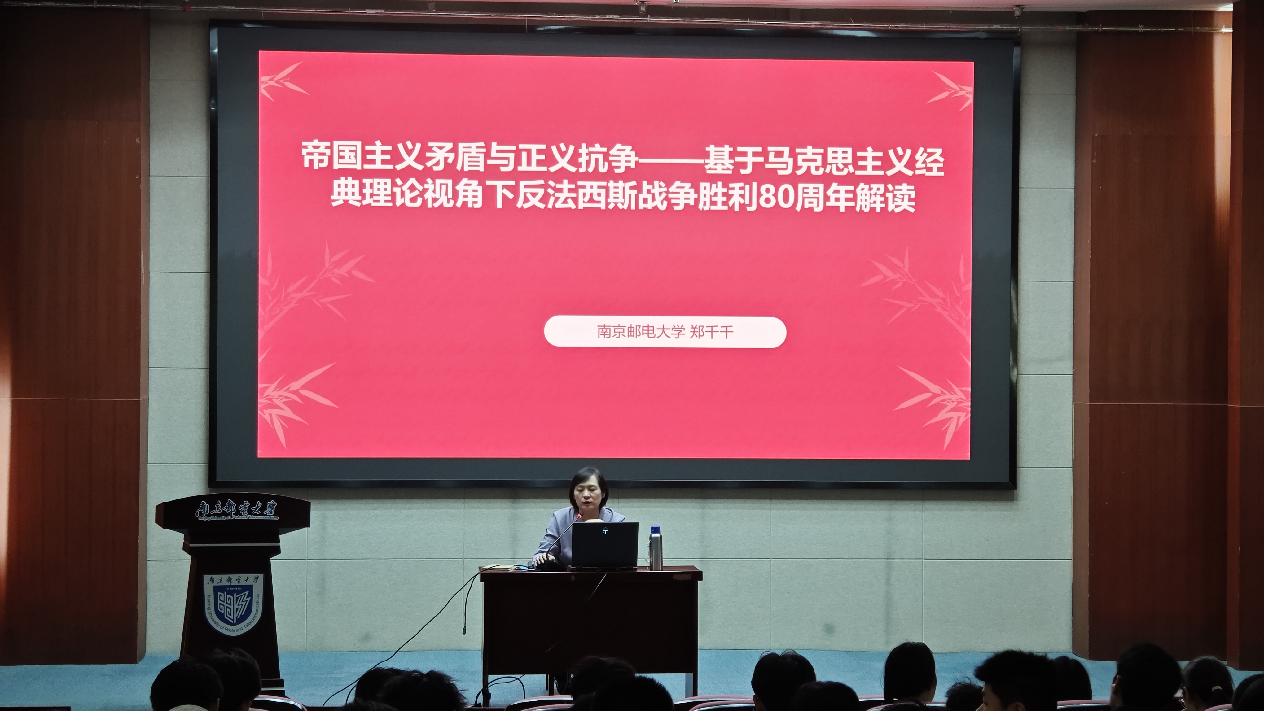 今年是世界反法西斯战争胜利80周年。习近平总书记《在纪念中国人民抗日战争暨世界反法西斯战争胜利80周年大会上的讲话》指出,“历史警示我们,人类命运休戚与共,各个国家、各个民族只有平等相待、和睦相处、守望相助,才能维护共同安全,消弭战争根源,不让历史悲剧重演!”铭记伟大历史胜利,凝聚正义和平力量,11月12日,马克思主义学院郑千千副教授做客立人大讲堂,作题为《帝国主义矛盾与正义抗争——基于马克思主义经典理论视角下反法西斯战争胜利80周年解读》的专题讲座。