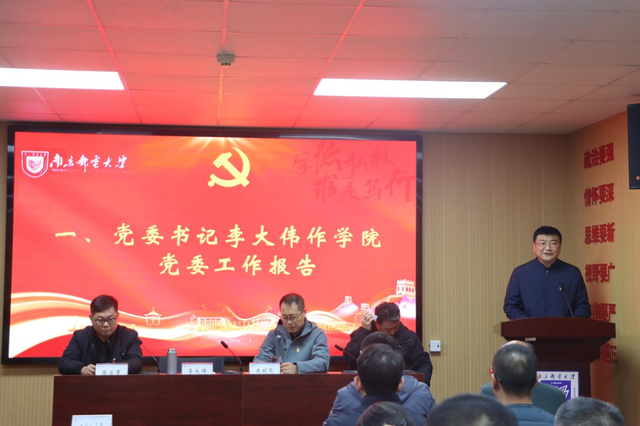 党委书记李大伟代表上一届学院党委作题为《凝心铸魂担使命 奋楫扬帆启新程》的报告,系统总结过去五年学院党委的工作成效、困难与不足,科学谋划未来五年的发展蓝图。过去五年,学院党委坚持以习近平新时代中国特色社会主义思想为指导,全面贯彻党的教育方针,落实立德树人根本任务,围绕中心工作抓党建,团结带领全院师生党员,以党建为引领,以立德树人为根本,以思政课教学为核心,以学科建设为支撑,群团统战以人才工作为保障,推动各项事业实现全方位突破、高质量发展。未来,学院党委将围绕“一流党建引领一流学院建设”的总目标,实施“党建强基、学科立院、人才强院、育人兴院、服务活院”五大战略,奋力开创学院发展新局面,努力建成信息特色鲜明、省内一流、国内知名的马克思主义学院。